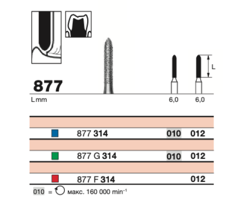 Стандартная зернистость подходит для проведения большинства рутинных процедур. Рабочий диаметр 1.4 мм обеспечивает хороший контроль обрабатываемой поверхности. FG-хвостовик надёжно крепится в турбинном наконечнике.